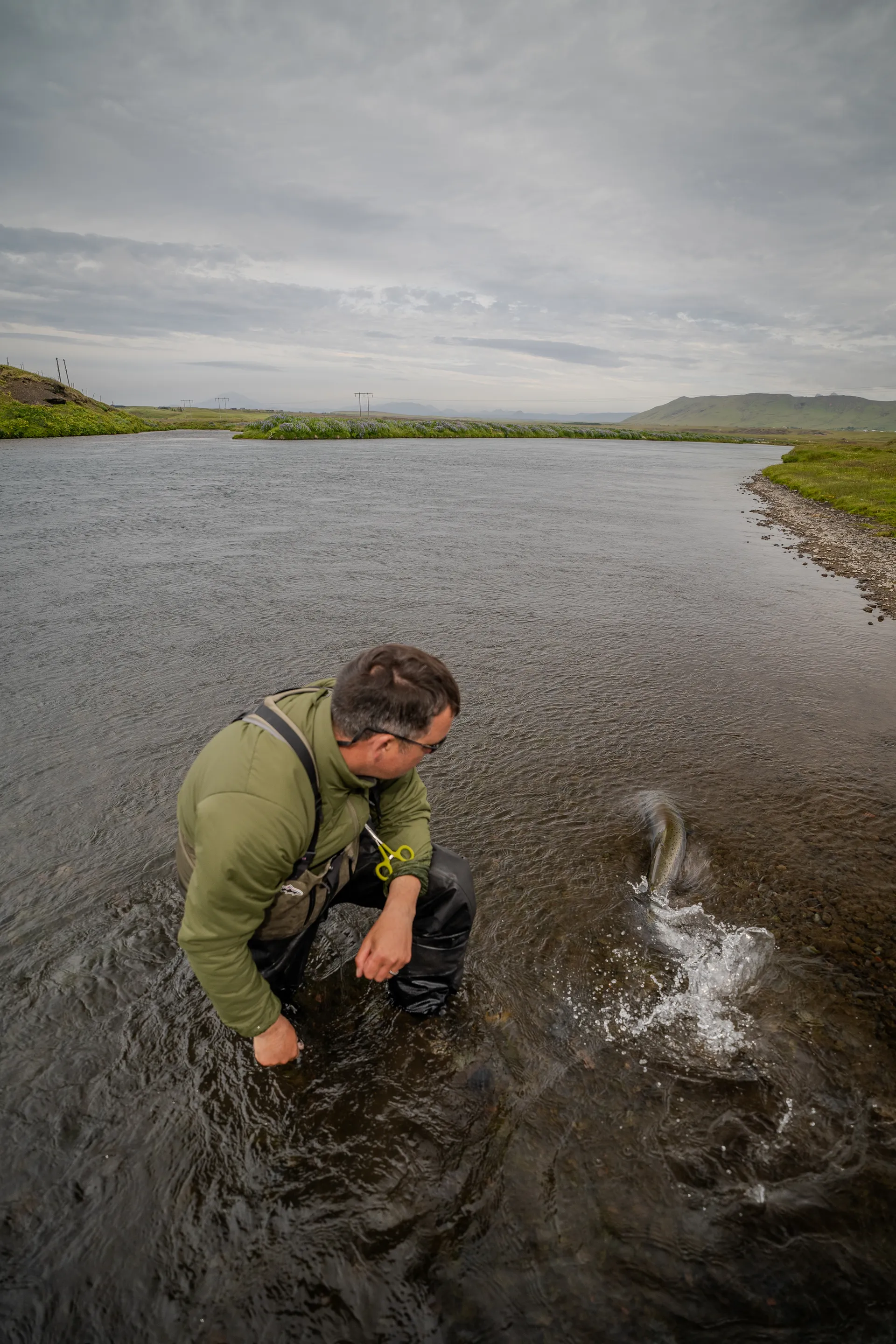 Day 1 You'll be landing on Keflavik that same day early in the morning and driven to the lodge before lunch. As you arrive you'll get your room assigned, you can either get unpacked or chil at the lodge’s bar before lunch. After lunch, your guide will help you set up your rod and get everything ready for the first fishing session, departure at 15:00hs and fish till 20:00hs. Time to go back to the lodge to enjoy the hot tubs or just head to the bar to listen to people lying about lost fish and showing fish pictures. Dinner is always around 21:30hs.