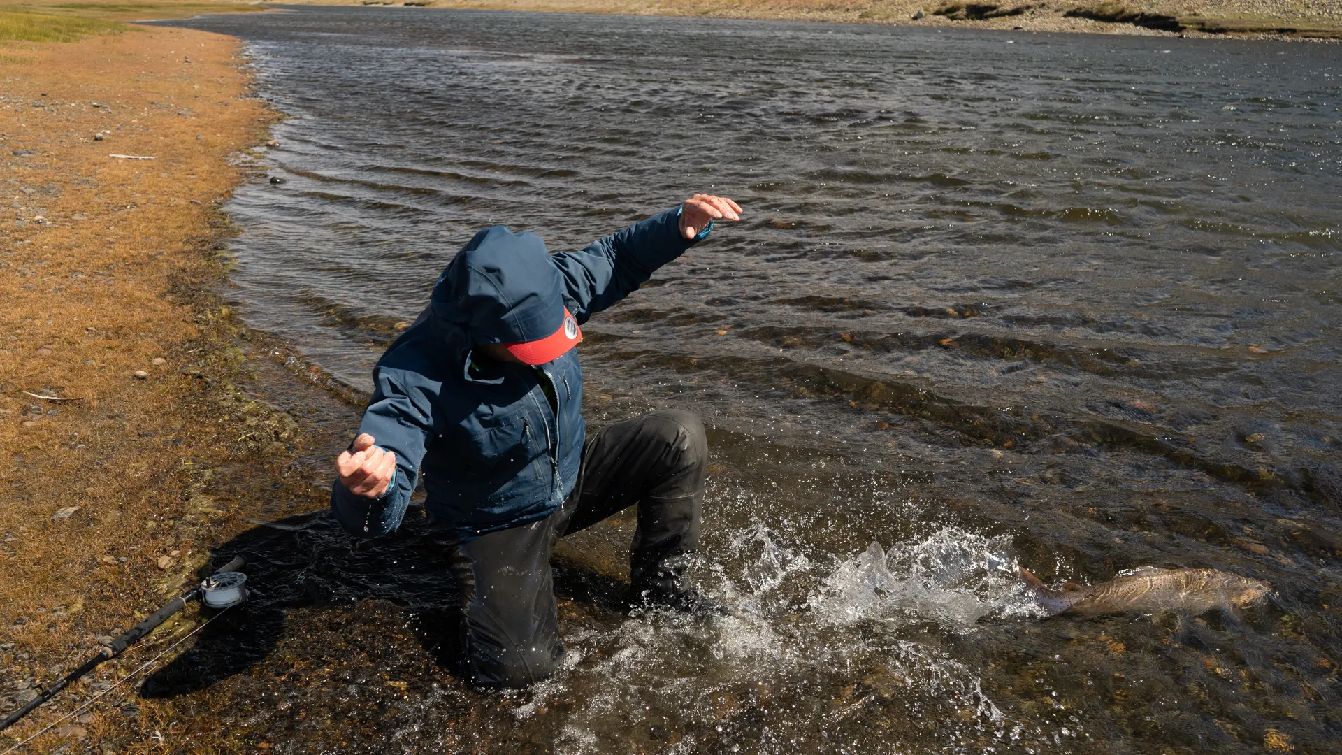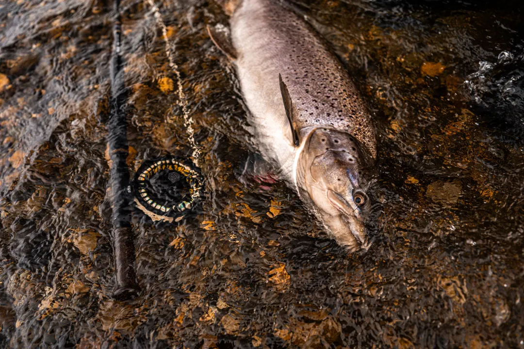 The river’s layout offers variety — deep pools, fast riffles, and easy wading thanks to its shallow flow. Most fishing is done with single or light double-hand rods using floating or intermediate lines, focusing on line control and presentation rather than long casting. Strikes are explosive, and hookups can happen right at your feet.